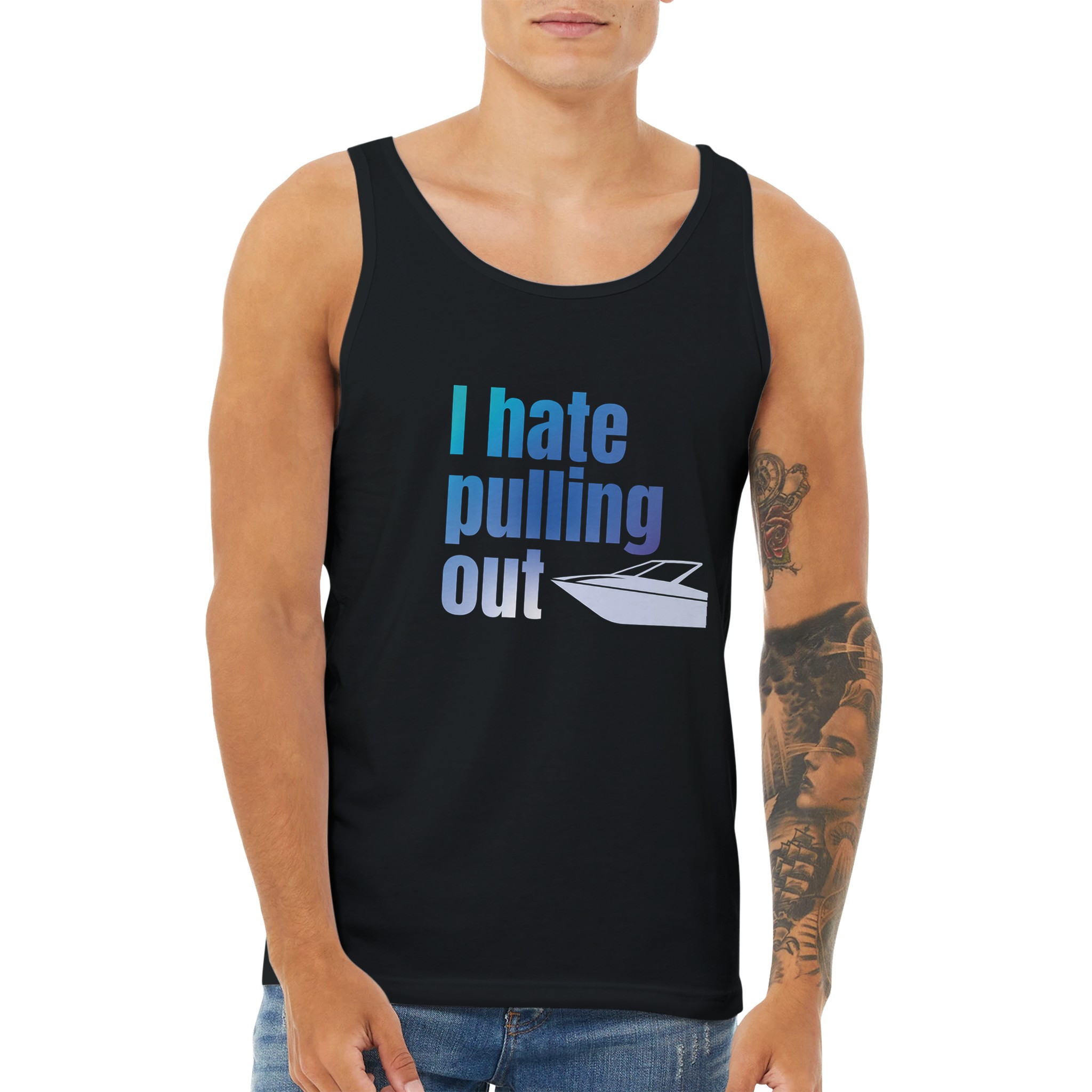 Boat life just got a lot cheekier. This funny tank top proudly declares, “I hate pulling out” — complete with a boat graphic for maximum double-take potential. Perfect for lake days, beach hangs, or just stirring up laughs wherever you go.